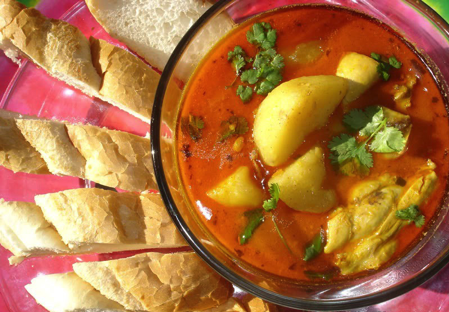 Fig. 4. Khmer Curry with Bread, Digital image 800 x 556, Available from: Medium, <https://medium.com/@nhung.seo1/delicious-food-traveling-in-cambodia-khmer-red-curry-coconut-milk-flavored-but-not-for-the-chili-f042f7ec29ff> (accessed August 2018.)