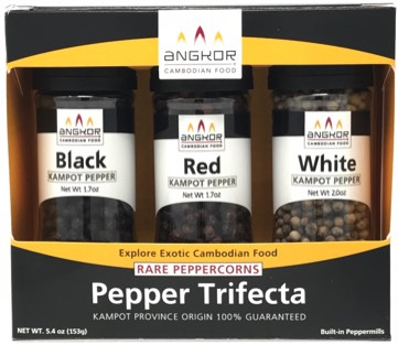 Enjoy the distinct and natural taste profiles of Kampot peppercorns with the Kampot Pepper Trifecta!